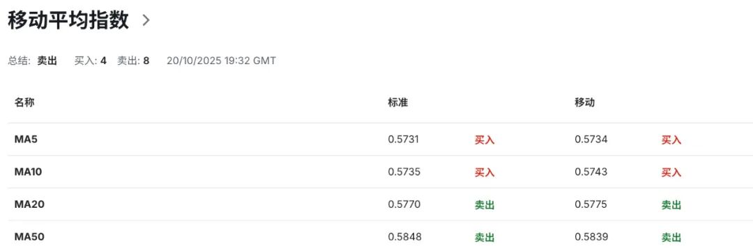 综合而言,纽币价格走势短期驱动出现“错位”。一方面,新西兰第三季度通胀压力升至2024年年中以来的最高水平,这限制了该国央行进一步大幅降息的能力。经济学家们表示,随著通胀升温,未来采取降息措施可能会更为谨慎。而另一方面,新西兰整体经济依然疲软,失业率居高不下,新西兰联储已暗示将进一步降息。二者共同反映新西兰联储在通胀压力以及经济疲软中正寻求微妙平衡,同时面临更为艰难的货币政策趋向选择绘制纽币价格走势的复杂图景。与此同时,美元回吐部分涨幅,权益市场的风险偏好修复,对纽币形成一定托举。更关键的是,被推迟至周五公布的美国9月CPI物价通胀指数报告因政府停摆而顺延,将直接影响联邦公开市场委员会的沟通基调。根据芝加哥交易所CMEFedWatch观察工具显示,市场已“充分计入”10月美联储会议降息25个基点的情景。这一押注若被CPI强化,美元可能进一步走软,反之则引发再定价。当前的宏观图景因此呈现出风险偏好改善支撑纽币,但新西兰端经济叙事偏弱与货币宽松预期维持高位限制反弹斜率,导致价格更倾向于在0.5765-0.5700区间格局内展开拉锯。因此,纽币需在有效打破该区间格局限制后,才有望重塑短期价格走势基调。如若其在本周收市期间可成功站稳至0.5765区域上方,则将有望为强化多头动能修复提供积极信号,从而带动汇价在后续进一步通往测试9月高点0.5845目标区域塑造新的潜在结构性反弹空间。而如若0.5700关口防线再度失守,则阶段性底部构筑信号迎来负面转向,并同时引发空头抛售情绪再度升温,从而导致汇价面临进一步下行测试0.5620目标区域的风险加剧。