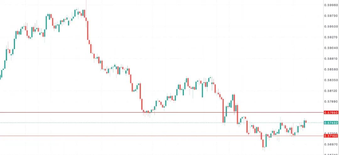 综合而言,尽管新西兰统计局昨日发布的新西兰第三季度通胀压力升至2024年年中以来的最高水平,但当前经济环境显示,通胀虽处温和上升趋势,但整体疲弱的经济增长仍然难以改变新西兰联储维持货币宽松的政策叙事。因此,需防范纽币在基本面传导逻辑上所隐含的“冲高回落”,或“弱上行,强回落”风险积累。而短线价格走势维度则指向0.5765-0.57150区间格局,纽币需在成功打破该区域格局限制后,才有望在当前多空博弈临界面中寻求新的短线突破情景。对于买方而言,尽管纽币在对0.5765区域进行有效突破确认后有望抬升至0.5800目标区域附近,但0.5765这一区域仍然对其构成强阻力效应,暗示遇阻回落以及冲高回落风险尚存。与此同时,市场买方风险焦点需关注0.5715一线,如若该区域防线失守,则需紧惕市场空头抛售热度升温,从而导致汇价面临进一步下行测试0.5681低点区域的风险加剧。